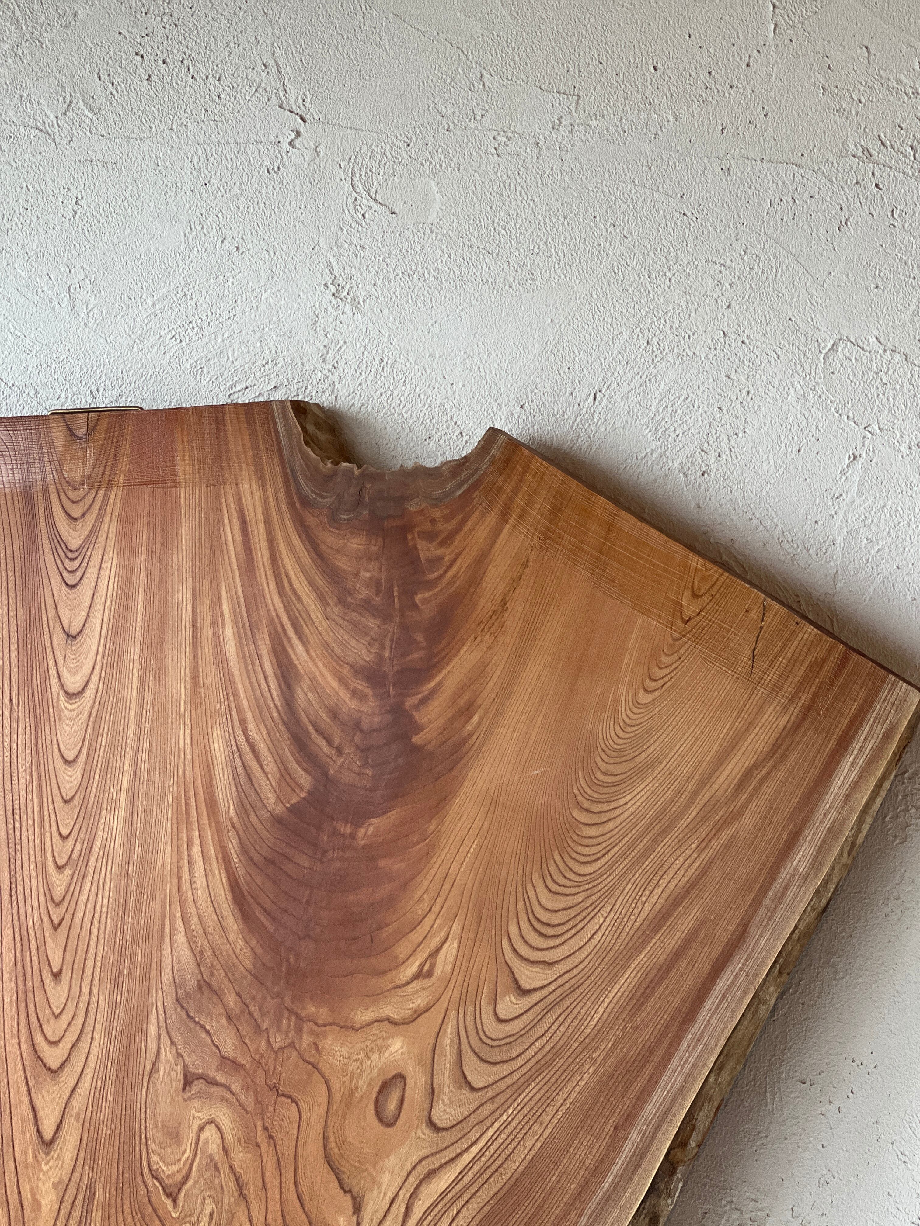 この一枚板は、学問の神として知られる菅原道真公が自ら植えたと伝えられるケヤキになり、大変希少なケヤキになります。千年以上を生き抜いた巨樹もあり、ケヤキが持つ生命力と精神性を象徴する存在として人々に親しまれてきました。その姿はまさに知と誇りの象徴。ケヤキには、長く静かに時を見つめ、語りかけるような奥深さがあります。