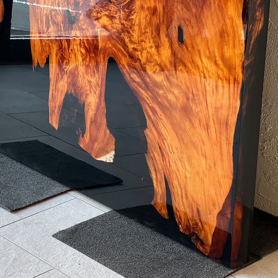 この屋久杉レジンテーブルは、アートパネルとして空間に圧倒的な存在感と高級感をもたらすだけでなく、ダイニングテーブルとしても実用性と美しさを兼ね備えた一点物の家具としてお使いいただけます。