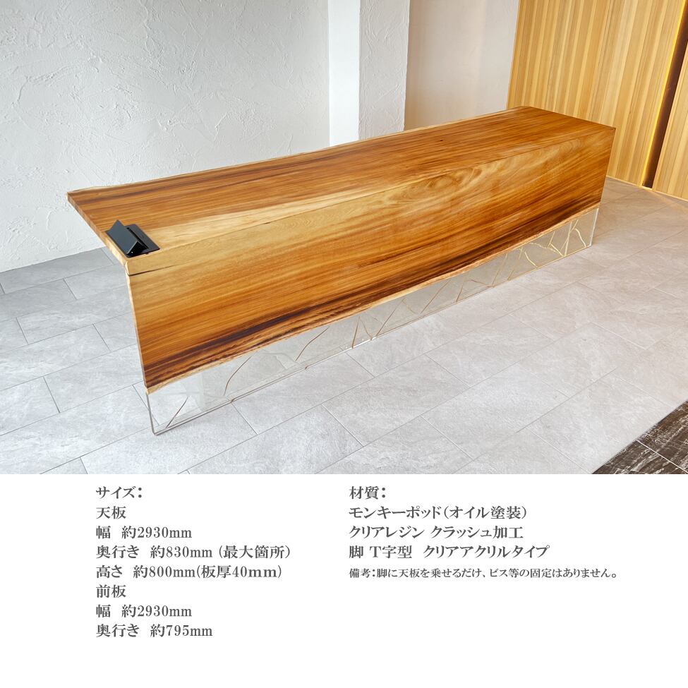 【一点もの】モンキーポッド レジンテーブル カウンターデスク 一枚板 天然木 受付カウンター おしゃれ家具 2930mm×830mm×800mm