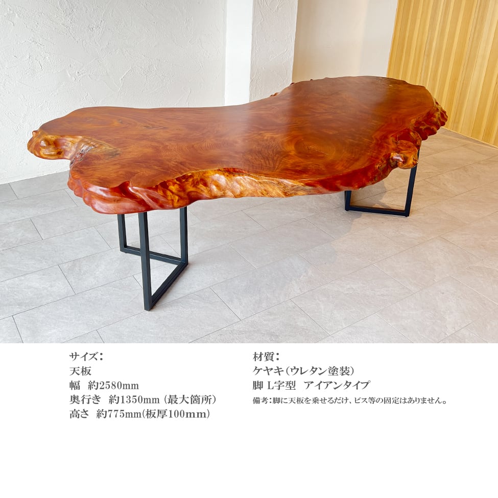 【一点もの】ケヤキ 欅 テーブル ダイニングテーブル 座卓 一枚板 天然木 おしゃれ家具 2580mm×1350mm×775mm 厚100mm