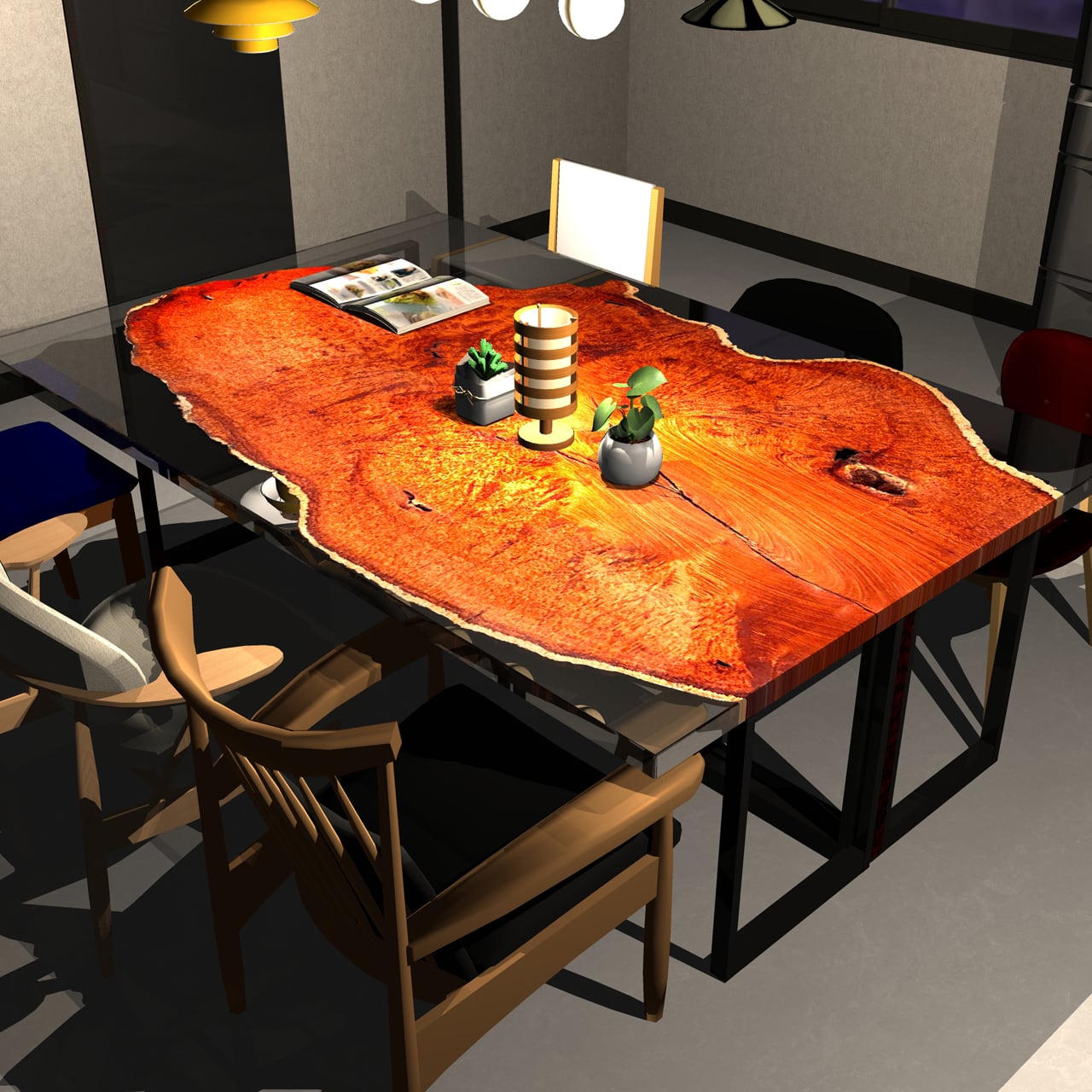 割れや穴はレジンで丁寧に埋めることも可能で、アートピースや高級ダイニングテーブルとして唯一無二の存在感を放ちます。