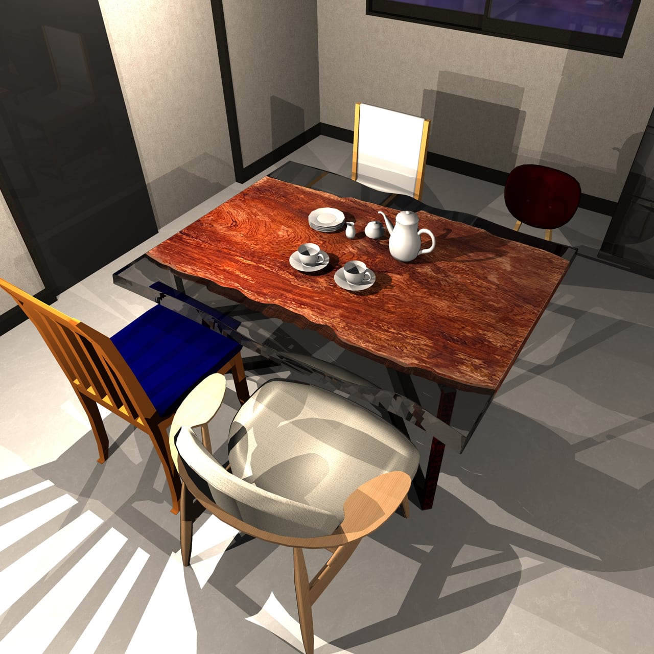 独特な杢目が木の生命力と造形美を語り、空間に深みと品格をもたらします。