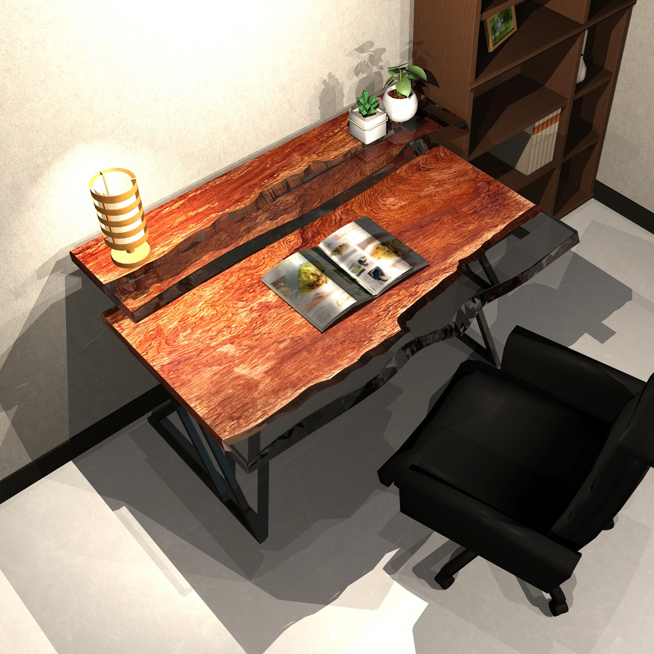 このブビンガ一枚板は、素材の個性を最大限に活かした一点物。